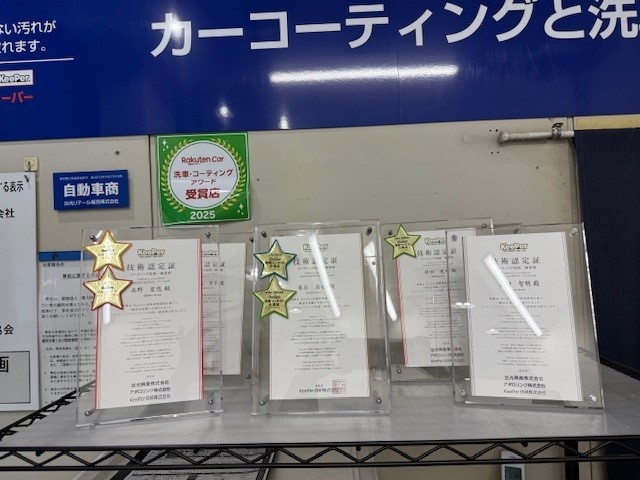 成瀬店には、キーパーコーティング技術1級資格者4名が在席、町田森野店には、キーパーコーティング技術1級資格者3名が在席しております。